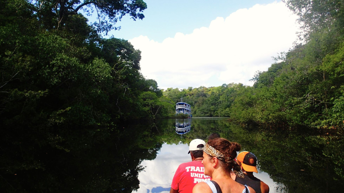 Vi legger ut på verdens største elv - i verdens største regnskog. Det kribler i magen og sitrer i kroppen. Solen varmer og skinner fra en klar, blå himmel. I flere kilometer renner de to elvene Rio Solimões og Rio Negro side om side - før de forenes og danner Amazonaselven.