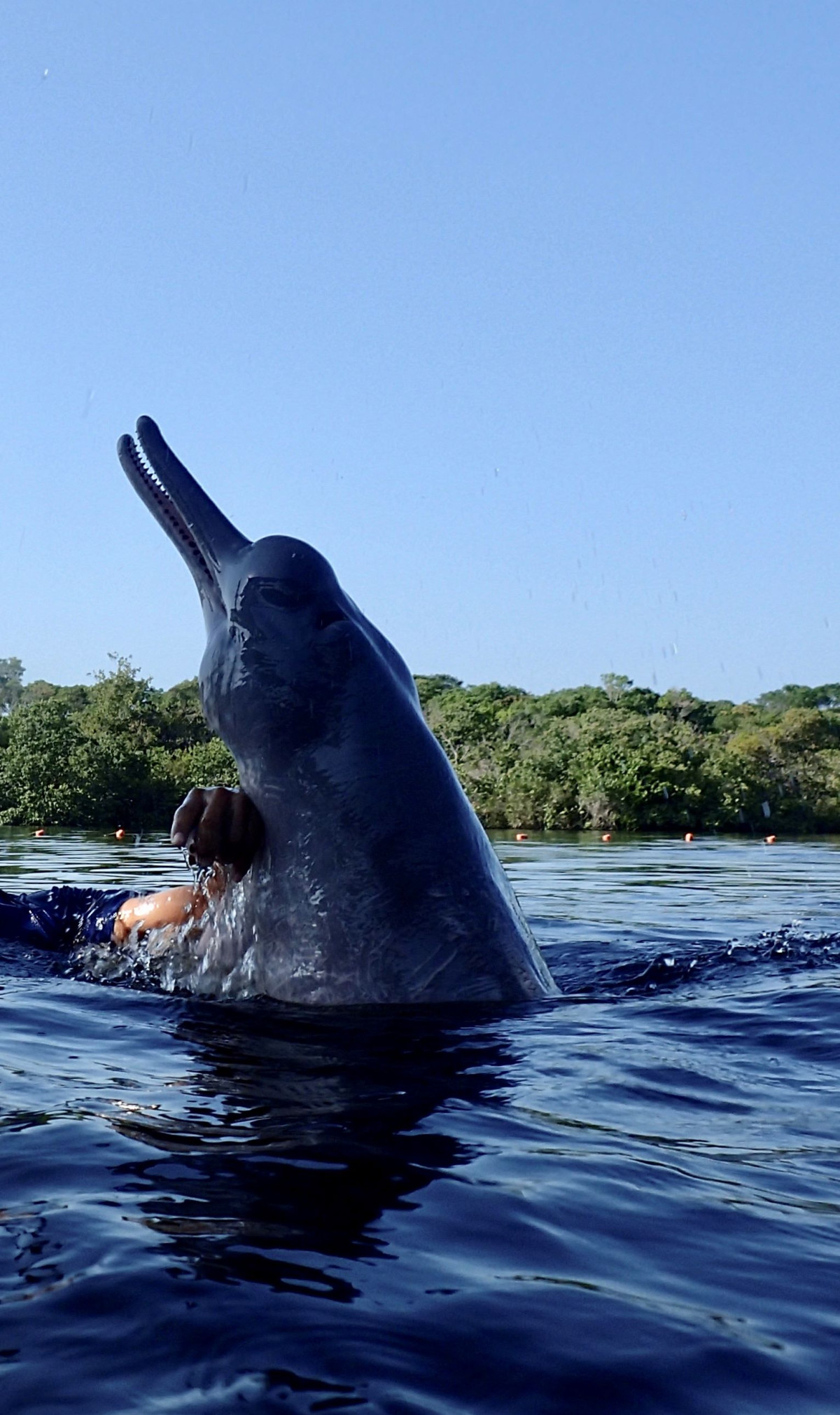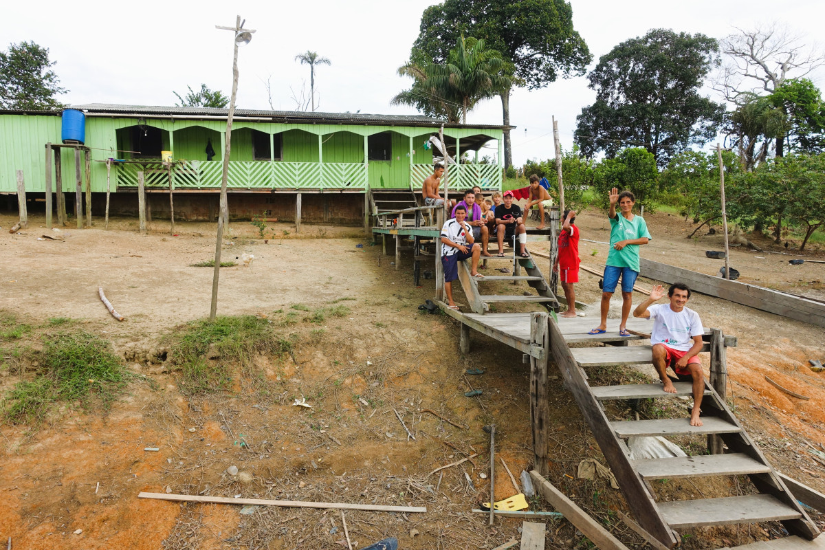På det aller mektigste – etter regntiden - har vannet steget med 12 – 15 meter. Det er bare da vi kan komme inn på denne lille elven og det er da vi kan padle, på toppen av trærne, langt innover i jungelen – til steder vi aldri kan ankomme når det er lavvann. Pirajafisk på stangen - rett i pannen - serveres til lunsj - mmm … Og etterpå svømmer vi med delfinene.