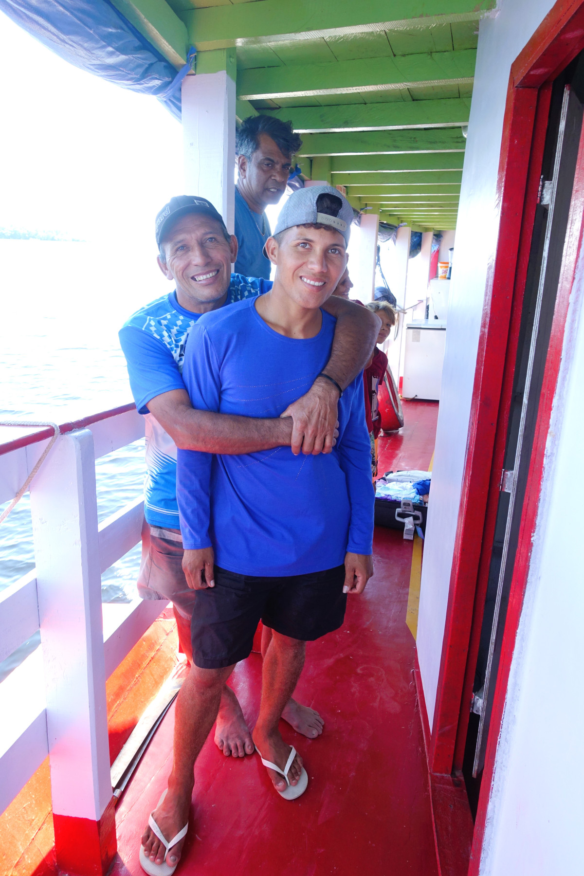 Vi er tett på hverandre. Det eneste helt private området er din hengekøye. Toalettsaker og poser med klær henger vi opp i taket ved vår egen hengekøye. Jeg har kroker. Det er klesskapet vårt. Det er lite vi trenger. Kofferten blir stuet ned eller blir stående i 1. etasje. Våre hengekøyer er i 2. etasje. Vi har tilgang til koffertene underveis. Vi tørker klær på snorer som er bundet opp rundt kanten på båten. Vi ser etter hvert ut som et riktig «taterfølge». Vi har hele båten til disposisjon, men mannskapet dominerer nede og vi oppe. Mannskapet er sertifisert og mestrer alt som eventuelt kan skje med båten.