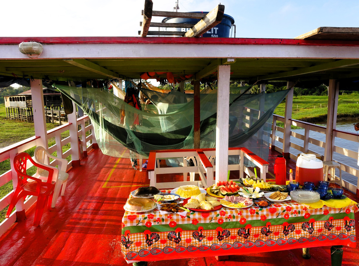 Der nede i havnen ligger den tradisjonelle elvebåten og venter. Den blir mitt hjem de neste ukene. Rigget til med hengekøyer, mat og brensel for en flere dager lang reise; med kokk, mannskap og guide. Amazonas – bare navnet melder om eventyr i vente.