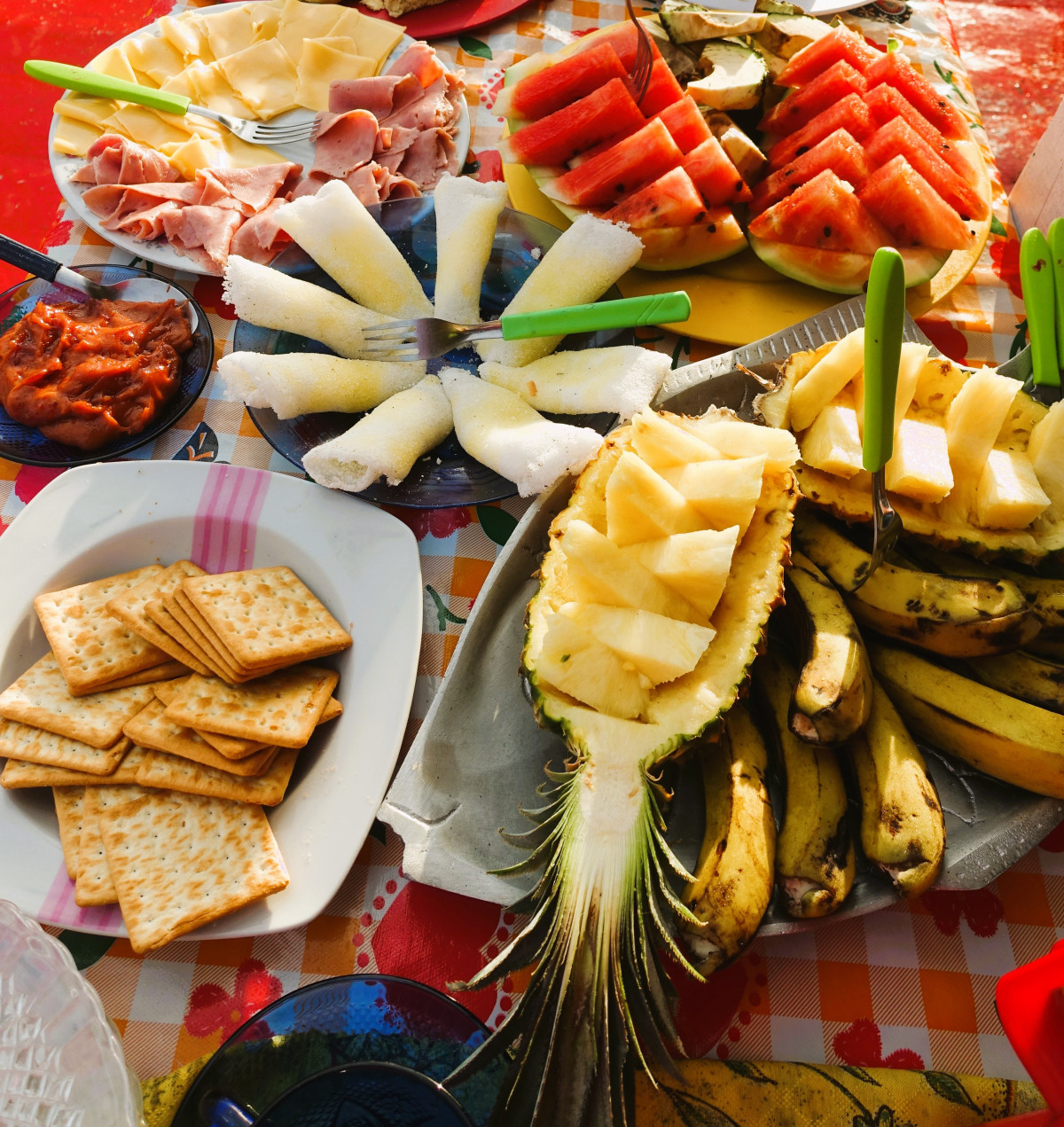 Båten er utstyrt med et enkelt kjøkken, men kokken tryller frem god mat. Vi får måltidene servert noen ganger oppe og andre ganger nede. Det kommer an på varmen. Vi har mye felles tid, men ønsker du alenetid tar du med deg en stol og setter deg et sted for å nyte naturen, meditere eller leser din gode bok.