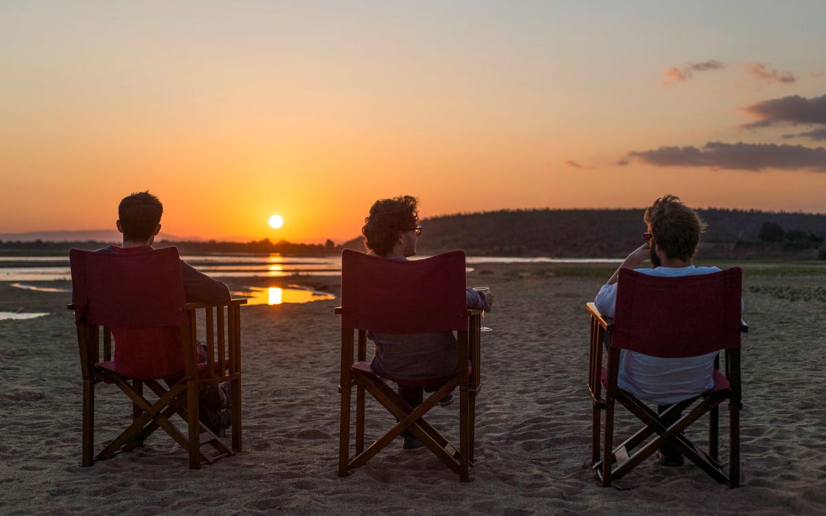 Tilbake ved lodgen er det tid for å nyte solnedgangen på stranden før middagen serveres i strandhuset.