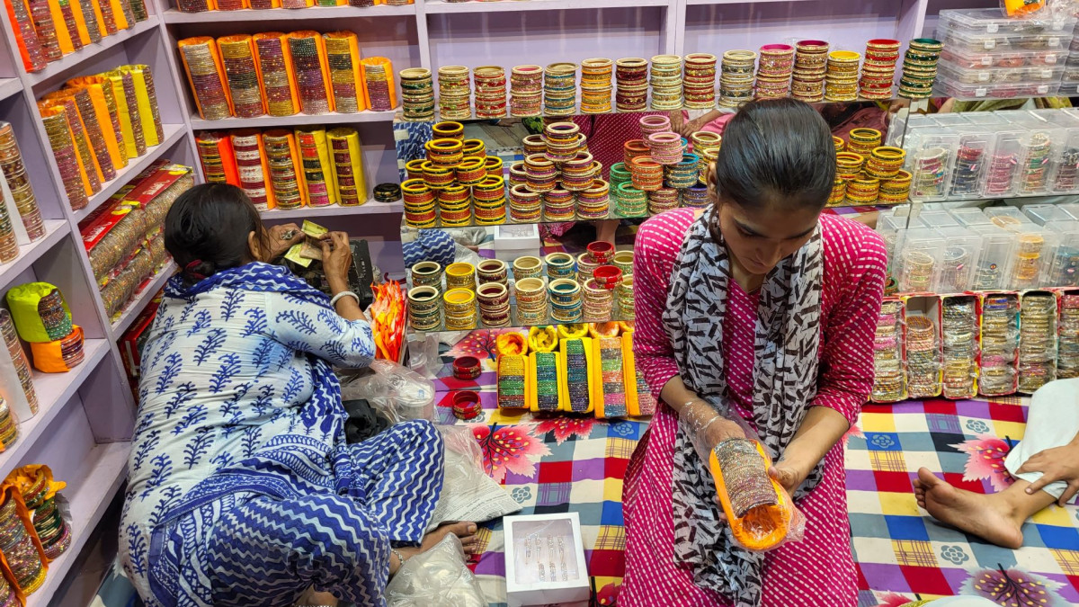 Tilbake til gaten. Jeg får oppmerksomhet, ingen tvil om det. Jeg skiller meg ut med både høyde og hudfarge. Men det som slår meg er at alle, absolutt alle blikk jeg møter er vennlig nysgjerrige. Øyne smiler mot meg. Det hilses i øst og vest. Når jeg stopper ved en bangles-butikk blir det nesten partystemning. Jeg som egentlig ikke er superhappy med å være der det er folksomt, jeg kjenner at her er det rett og slett bare godt å være. Det skulle bli mange besøk i denne gaten i løpet av disse dagene i Karauli.