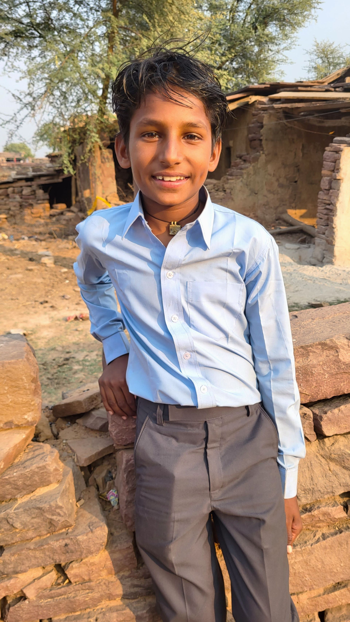Noen spredte hus og noen bittesmå landsbyer. Vi stopper i en av dem. Steinmurer sirlig murt omkranser landsbyen hist og her. Små murhus. Noen i mud-farge andre i knallsterke farger. Vi er tross alt fortsatt i Rajasthan. Vi parkerer bilen og går innover en av gatene som leder inn mot noen hus. Folketomt. Bare kuer å se. Men så! Nysgjerrige barn dukker opp fra intet. De kjenner igjen Juvrai, vår lokalguide for anledningen. Han er innom rett som det er.