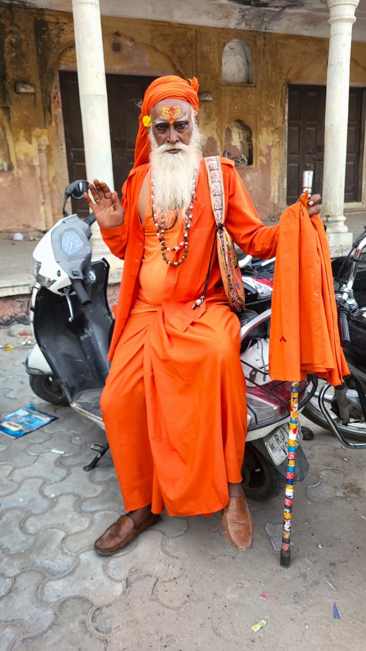 Så kommer for meg en fargerik overraskelse. Jeg blir tatt med til tempelet som hører til palasset og landsbyen (det er for øvrig cirka 300 templer i den lille landsbyen …) for å overvære en artiseremoni (hindu). Det har jeg aldri vært med på før, men makan til stemning og fargeeksplosjon. Det hele varer et kvarters tid. Jeg forstår absolutt ingenting av det som blir sagt og sunget, men jeg smiler da jeg forlater tempelet. Energiboost, rett og slett.