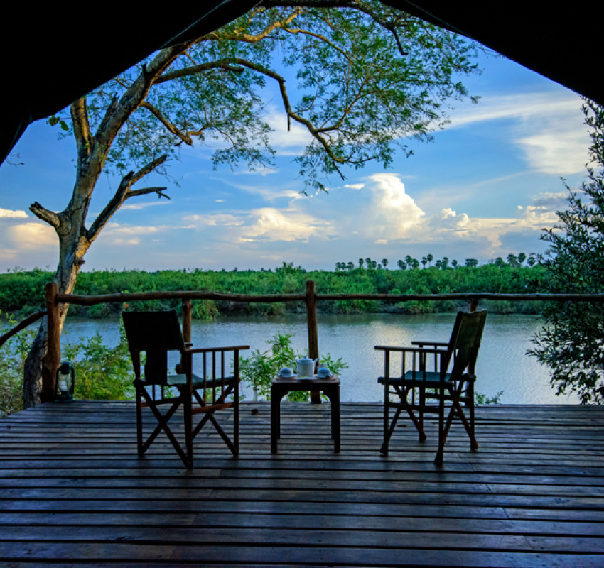 Rufiji River Camp har en misunnelsesverdig beliggenhet høyt oppe ved bredden av den store Rufiji-elven. Spektakulære solnedganger akkompagneres av gryntende flodhester og en kakofoni av fuglesang. Her bor du bra og safarien er ikke over, selv om du er tilbake i campen etter endt game drive.