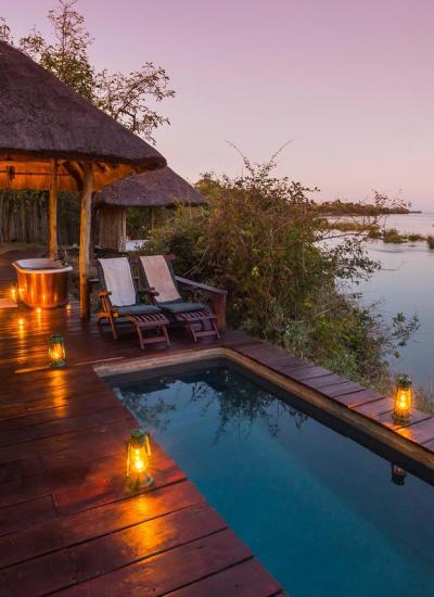 Royal Chundu er en prisbelønt Relais & Châteaux-lodge med høy luksusfaktor ved Zambezi-elven, nær Victoriafallene. Her kan du enten bo i River Lodge eller i Island Lodge.