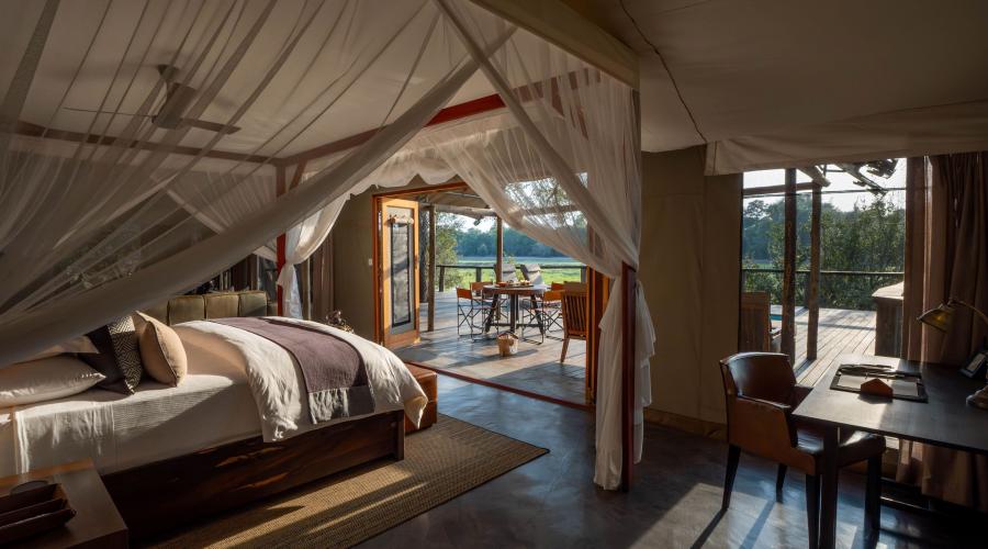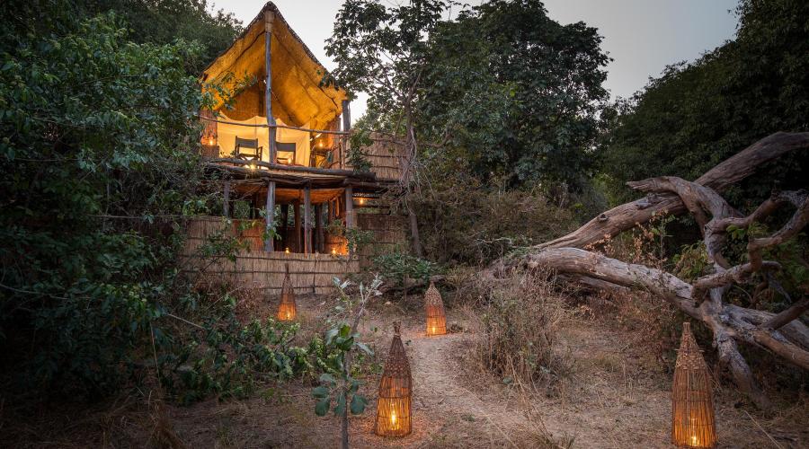 Kulandila betyr velkommen. Intimt med bare fire telt på en forhøyet terrasse. Egen veranda. Innendørs bad, utendørs badekar. Svømmebasseng og utsiktsdekk. Vidstrakt utsikt over Luangwa-elven. Hjemmet til vandringssafari. Vekk sansene og bli en del av naturens rytme.