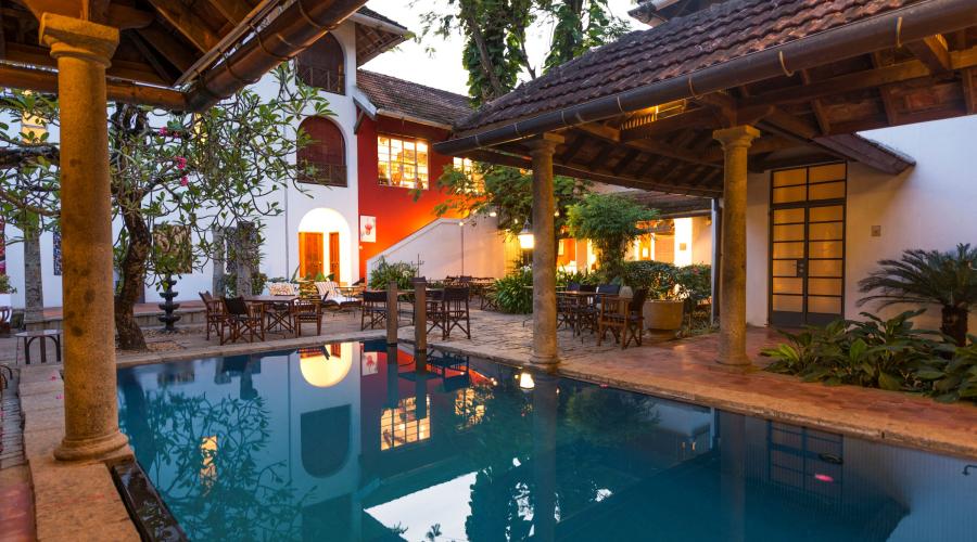 Med perfekt beliggenhet i den mest sjarmerende gaten i Fort Kochi finner du det som en gang var herskapshuset til en fremstående familie. Nå er det hotell, og standarden den er høy. Antagelig er det både det vakreste og koseligste boutique-hotellet i Kochi.