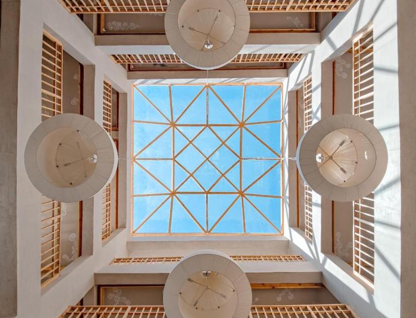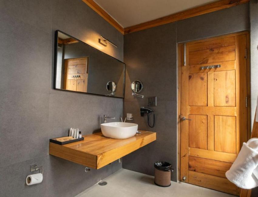 Hotel Chospa er en fredens oase midt i det pulserende sentrum av Leh, på Old Leh Road. Her er tradisjonell ladakhisk arkitektur og byggemåte forenet med det moderne. Det føles nesten som man trer inn i naturen når man kommer inn i dørene. Jordfarger og lek med lys fra vinduer og lamper. Atrium og krydring med fargesterke tepper, bilder og puter. Hotellet har restaurant og bakeri/café i bakgården. De ansatte opplevdes som varme og gjestfrie.