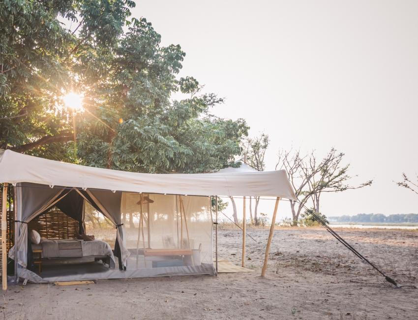 Dette er eksklusivt. Det er ikke mange lodger og camper som er inne i Lower Zambezi nasjonalpark, og Chula Island Camp er en av de desidert mest unike campene. Det er en mobil telt-camp plassert på Chula-øya.