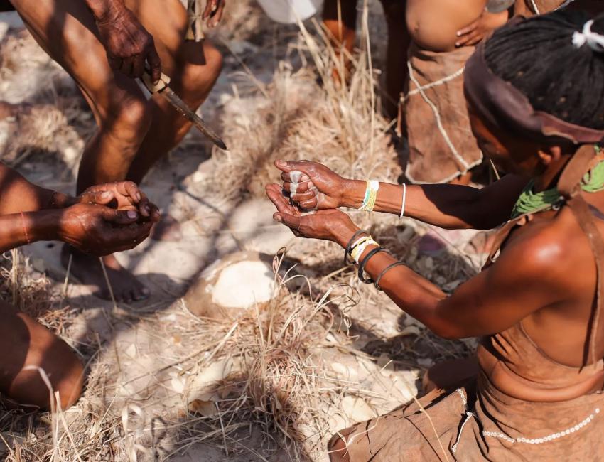 Det er imidlertid det ekte og autentiske samspillet med naboene, San-folket, som gjør Feline Fields Lodge helt unik. Her får du som gjest «henge med» buskmenn. Lære og oppleve. Historiefortelling som trollbinder. Førstehånds. Hvordan de levde og overlevde. Hverdagen, i dag. Ved bålet. Ute i bushen. I landsbyer. Du og buskmennene fra San-folket. Mennesker som stammer fra en av verdens eldste kulturer. Og har du lyst, kan du overvære San-folkets mystiske og spirituelle transedanser.