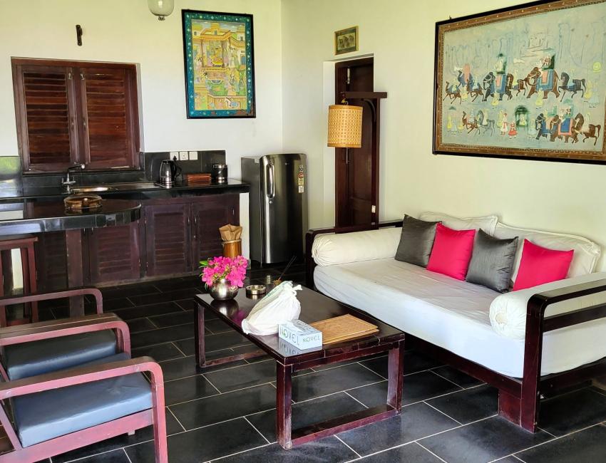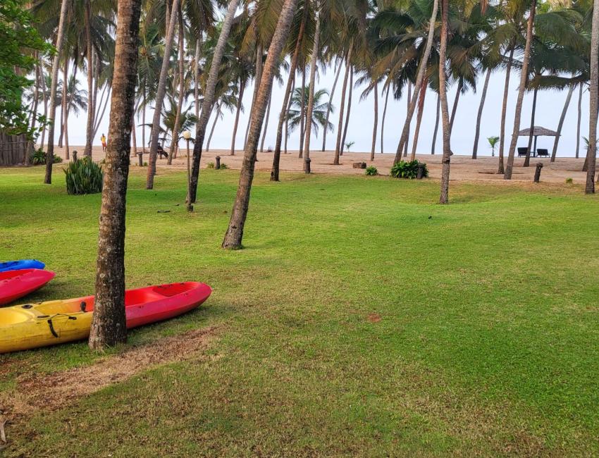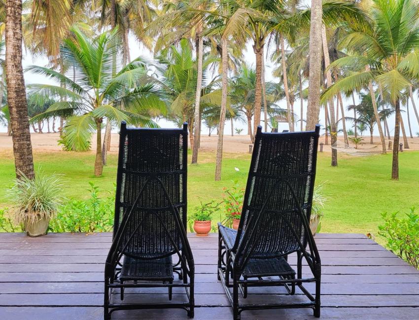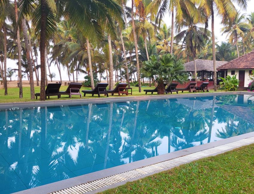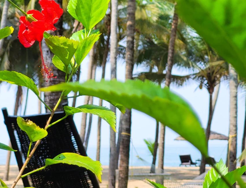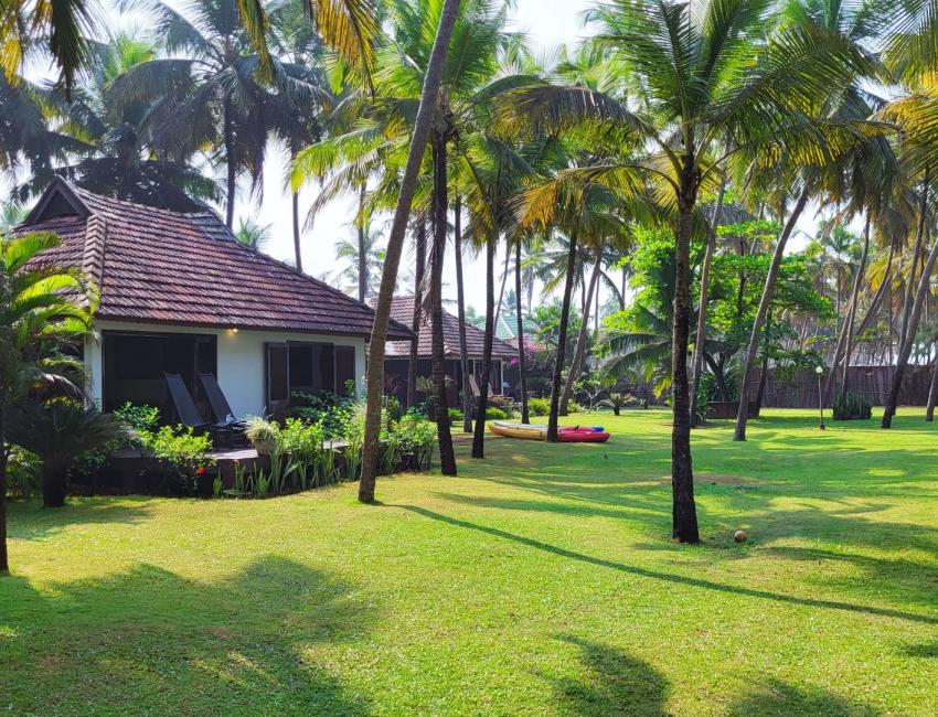 Resorten er nabo til Neeleshwar Hermitage og har like magisk beliggenhet ved stranden. Det er 10 romslige bungalower i den store hagen, alle med oppholdsrom, soverom, garderobe og bad. Det beste av alt er at du kan åpne to av veggene på bungalowen med skyvedører slik at inne blir ute, på en måte. Det finnes også familie-bungalower med flere soverom. Når du våkner er det bare å skyve dørene til side og du kan ligge i sengen og se på palmene, himmelen og stranden som er bare noen meter unna. Terrassen foran bungalowen er perfekt lokasjon til å nyte morgenkaffen eller en sundowner mens du hører på bølgeskvulp fra stranden. Eller ta ettermiddagsluren i hengekøyen mellom to kokospalmer i den store palmehagen. Restauranten med utsikt til både svømmebasseng og strand serverer god, indisk mat.