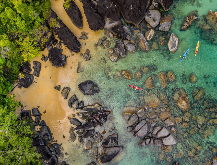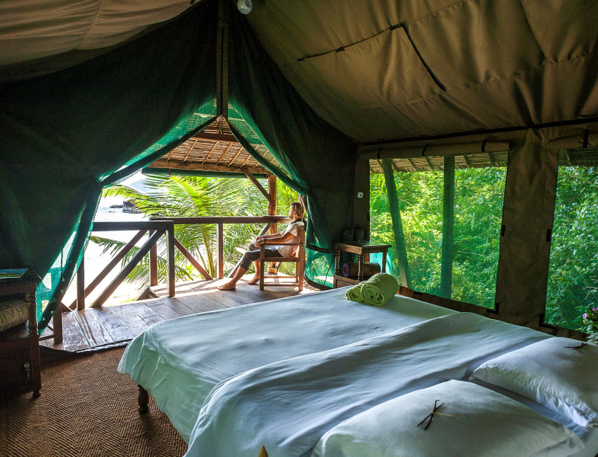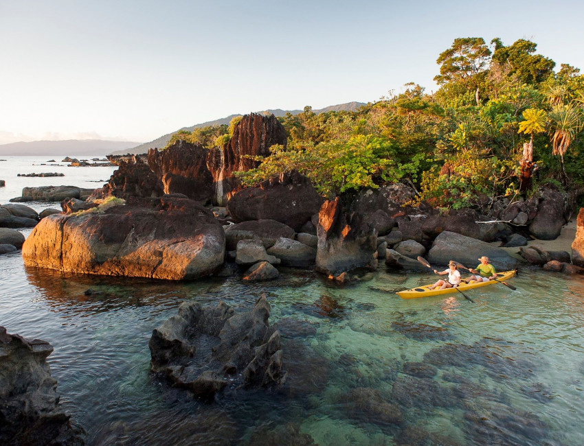 En halvøy dekket med regnskog. Kun tilgjengelig til fots eller via sjøveien. Som er eksotisk og uberørt. Et naturlig paradis tett på magisk dyreliv og natur. Der regnskogen møter havet og strendene er hvite. Der skal du bo. Åtte trehus med palmetak som står på stylter og gir deg uforstyrret utsikt over regnskogen og havet. Der er gjestfriheten stor, og maten er kortreist, i tillegg til at den smaker fortreffelig. Nye bekjentskaper stiftes med kameleoner og lemurer i regnskogen. Kajakken padles på turkise hav og kvelder nytes i det som trygt kan kalles et naturlig paradis.