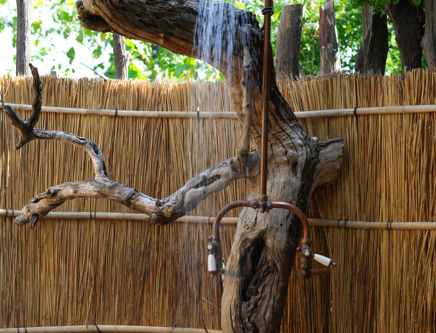 Fire hytter, idyllisk langs Mwamba-elven. Laget av vevd bambus og siv, på nytt hvert eneste år. Hver av de med sitt eget navn, gitt av floraen rundt. Et avslappet og rustikt design med skjulte luksusartikler. Alle hyttene har tilgang til et nettverk av stier som går bak hyttene, for å maksimere privatlivet. De har komfortable, skyggefulle verandaer og store skyvedører som gir en utrolig utsikt fra hyttene. Store bad under åpen himmel forsterker bushopplevelsen. Doble servanter, supplert med kobberkraner og vakre speil med levende kanter. Dusjer som er gjemt i trærne. Ren og stillegående solenergi forsyner hvert rom med belysning og kjølevifter. Det varme vannet i kranene kommer fra saktebrennende trær som har falt naturlig. En nydelig tilbake-til-naturen-følelse.