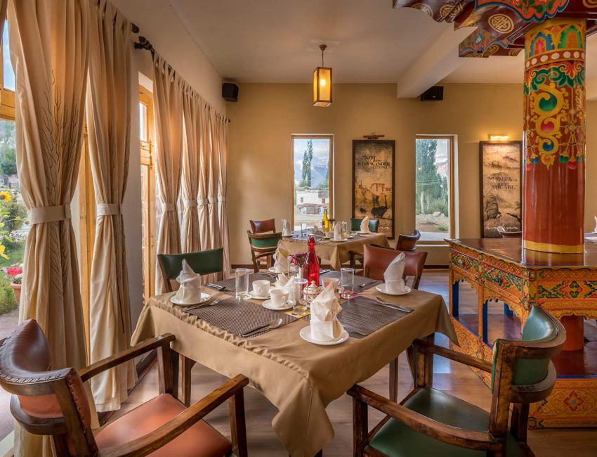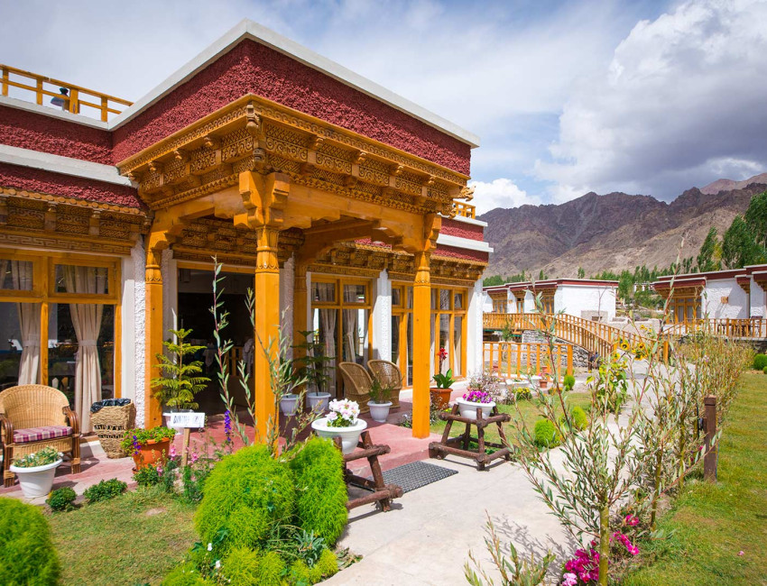 Saboo er en oase et kvarters kjøretur fra Leh. Omkranset av dramatiske fjell og utsikt over dalen er det naturen som spiller førstestemmen her. I den frodige hagen ligger 15 romslige hytter, alle med privat veranda. Resorten er kjent for god mat og varm gjestfrihet. Om kvelden er det gjerne samling rundt leirbålet for historiefortelling og stjernekikking. Stjernehimmelen er noe helt for seg selv på disse trakter.
