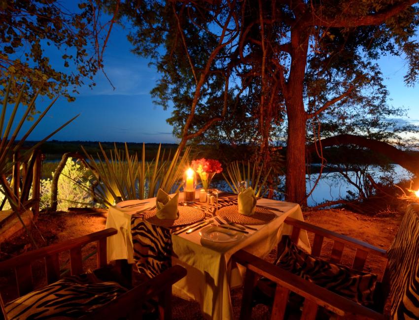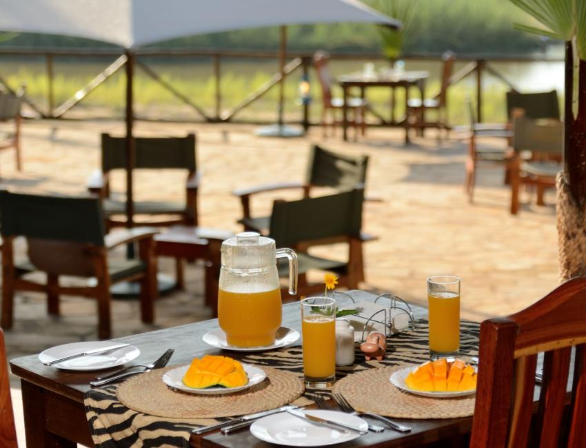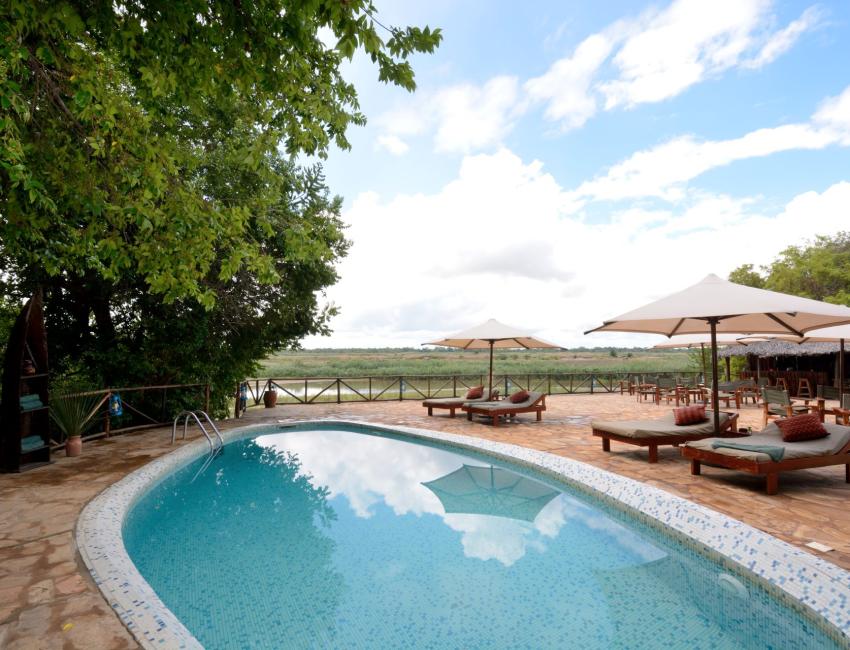 Restauranten ligger rett ved elven og gir deg en fantastisk utsikt med et dyreteater for hvert måltid. Campen har også et bassengområde hvor du kan kjøle deg ned på varme dager. Også her har du utsikt over elven.