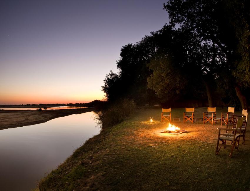 What to say? Her er det jeg rablet ned i notatboken ... Nydelig! Rustikk design. Campen bygges opp igjen hvert år. Drives av mor, far, datter og svigersønn. Det er sååå gode vibber her, by the way! Maten er nydelig. Sitte ved et bord med stearinlys på platået over elvebredden med en gjeng fine folk og Nick, svigersønnen. Lyder fra bushen. Og før det, en spinnvill solnedgang. Jeg har opplevd mange i Afrika, men dette var en av de beste.