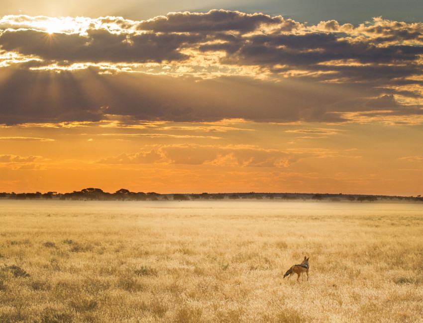 Tau Pan Camp ligger med en nydelig utsikt i det berømte Central Kalahari Game Reserve i Botswana. En nydelig oase i luksuriøse omgivelser. Nyt utsikten fra verandaen over det jadefargede busklandskapet og se om du får øye på dyrelivet som skjuler seg i buskaset. Campen har også en utsiktplattform med orkesterplass til vannhullet som tiltrekker seg masse dyr.