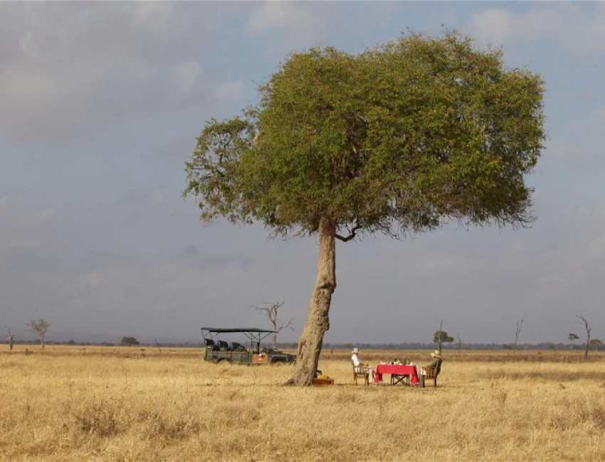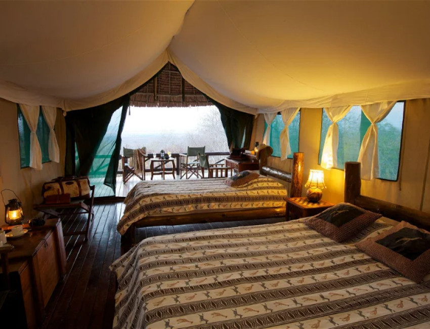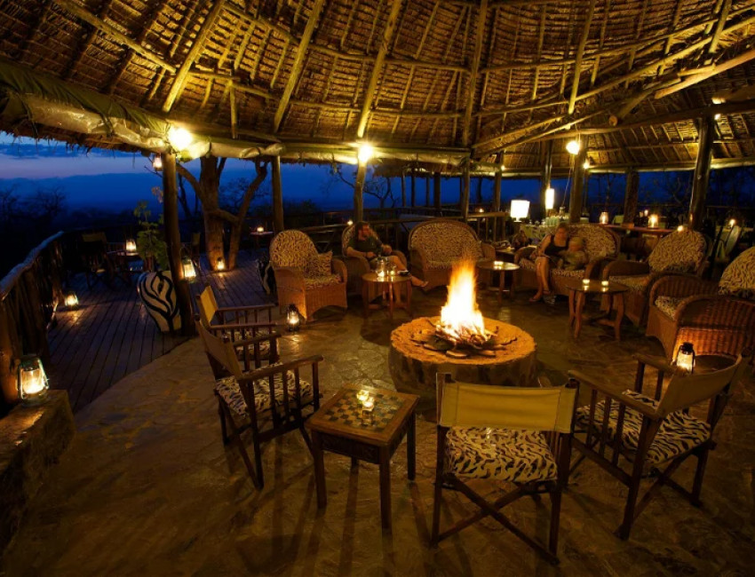 De seksten teltene er komfortabelt innredet, med en skyggefull veranda på forsiden og eget bad på baksiden. Et koselige barområdet er sentrert rundt en knitrende peis og har utgang til en stor terrasse hvor du kan nyte solnedgangen over Mkata-slettene nedenfor. Under det samme stråtaket ligger spisestuen med vidstrakt utsikt over de frodige trærne og svømmebassenget.